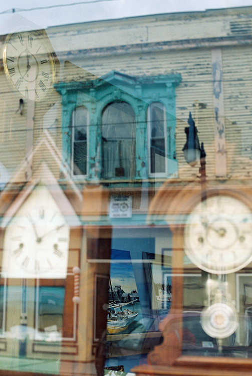 | Center: "Sawyer Square" Image from 35mm Kodak 400 VC film negative Right: "Eastport Clocks" Image from 35mm Kodak 400 VC film negative |