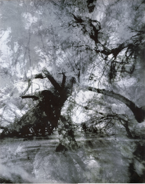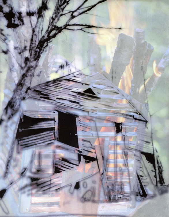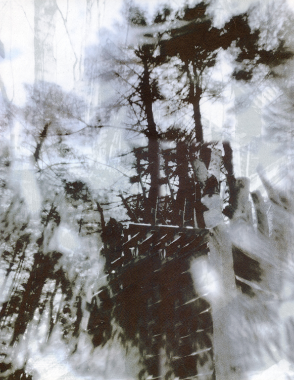 Left: "Flight Through the Forest" Composite of 2 Pinhole Images: Vellum Image Adhered over B&W Image on Cold Press Paper Center: "Wild Child" Composite of 2 Pinhole Images: Vellum Image Adhered over B&W Image on Cold Press Paper |
