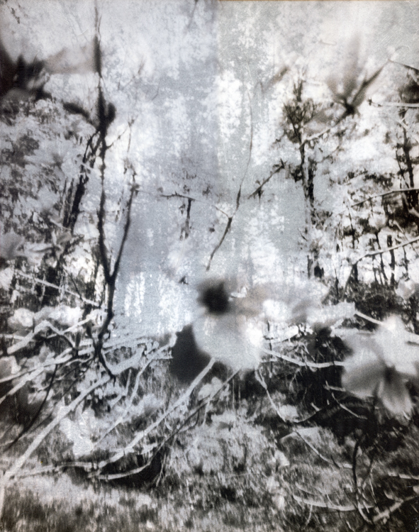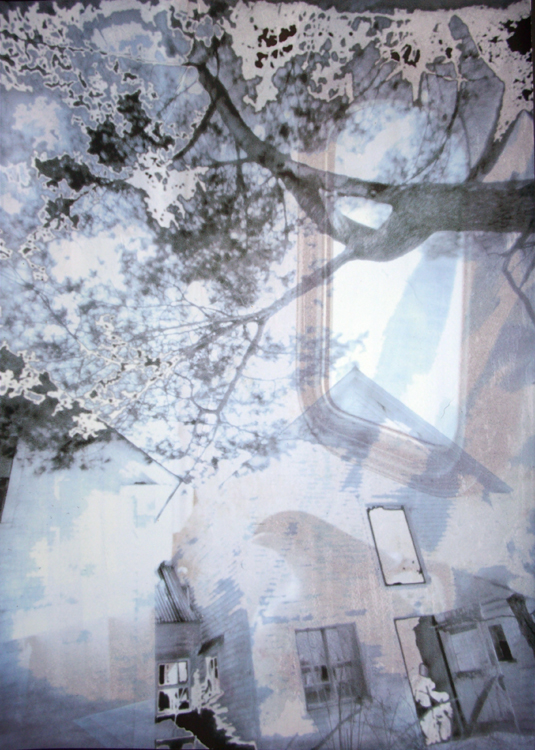 | Center: "Meditation" Composite of 2 Pinhole Image: Vellum Image Adhered over B&W Image on Cold Press Paper Right: "Dreams of My Past" Composite of 2 Pinhole Image: Vellum Image Adhered over B&W Image on Cold Press Paper |